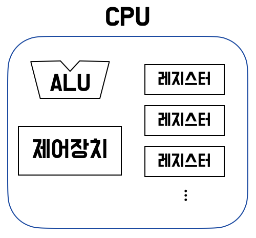 | CPU | 명령어를 실행하는 두뇌 (ALU + 제어장치 + 레지스터) |